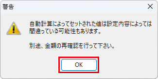 警告画面が表示されますので、内容を確認し「OK」ボタンをクリックします。