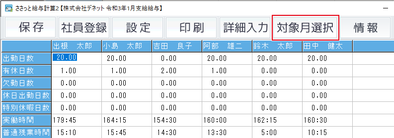 操作が完了しましたら、「対象月選択」ボタンをクリックします。