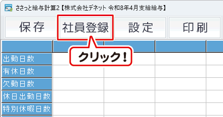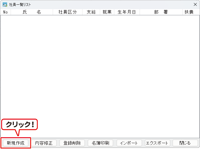 「社員登録」ボタンをクリックして、社員一覧リスト画面を表示します。