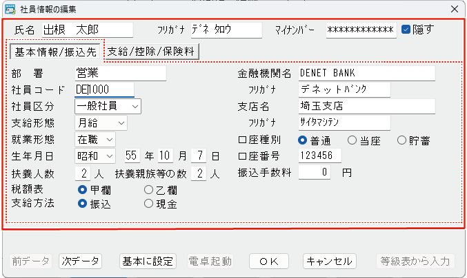 社員一覧リストに、登録した社員名と基本情報が表示されます。