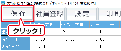 内容を確認後、「保存」ボタンをクリックしてデータの保存を行います。