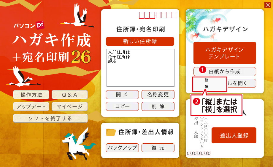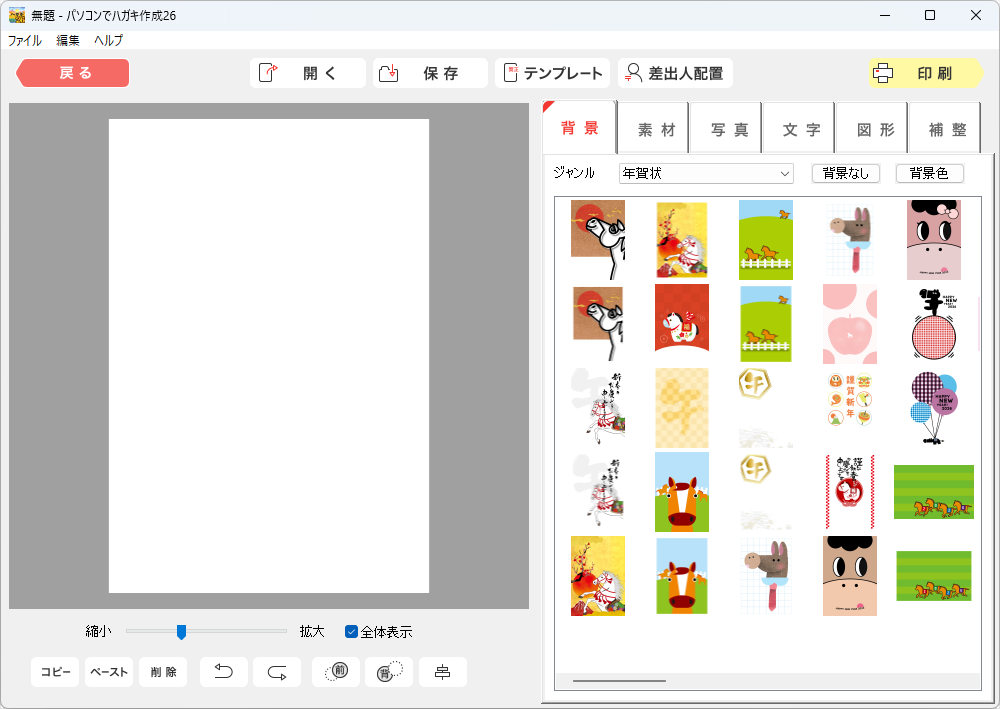 ハガキデザイン「テンプレート」画面から、「白紙で作成」