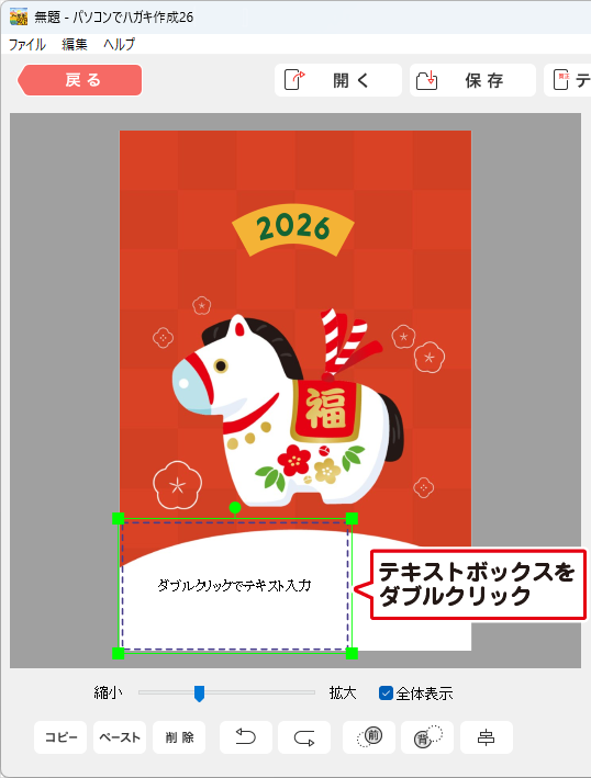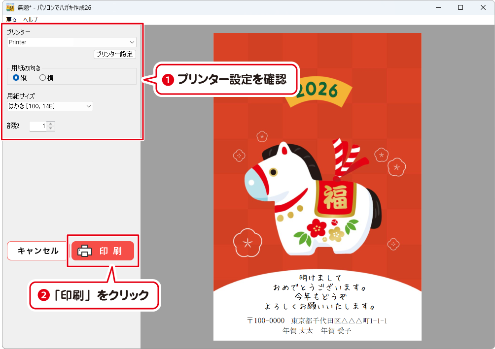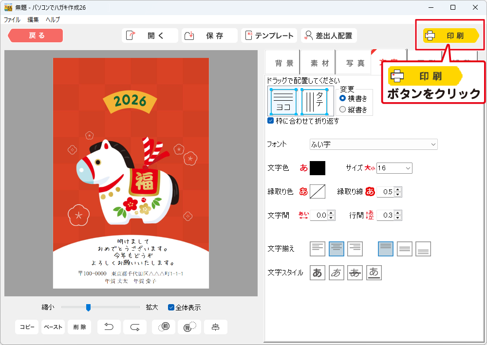 ❸「ハガキ面のデザインを作成する」をクリックします。