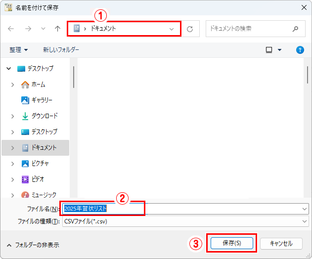 パソコンでハガキ作成+宛名印刷25CSV形式で住所録ファイルを書出します。