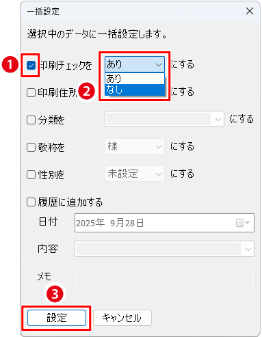 一括設定したい宛名をShiftキーまたは、Ctrlキーを押しながら、宛名をクリックします。