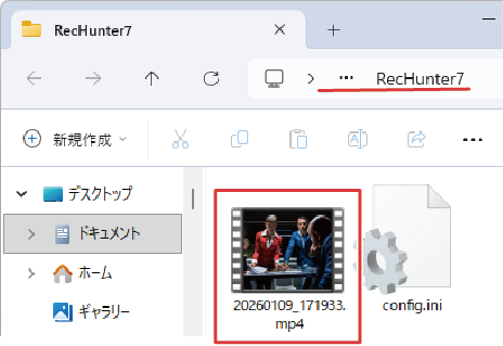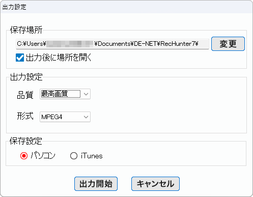初期設定では、Documents→DE-NET→RecHunter7に設定されています。