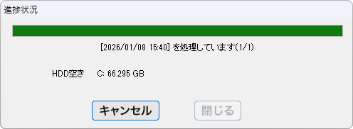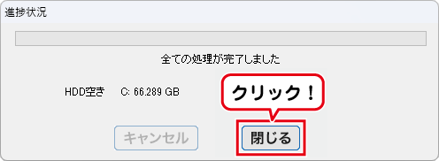 完了のメッセージが表示されましたら、「閉じる」ボタンをクリックします。