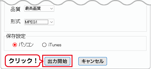 設定がよろしければ「出力開始」ボタンをクリックします。