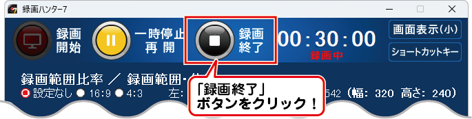 終了する際は、「録画終了」ボタンをクリックします。