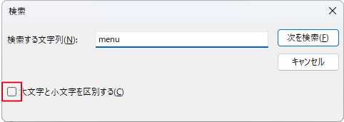 検索する文字に入力したアルファベットの大文字、小文字を判別して検索します。