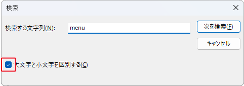 「大文字と小文字を区別する」チェックを付けた場合