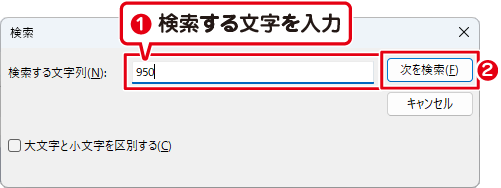 ❶ 検索する文字を入力します。例:950