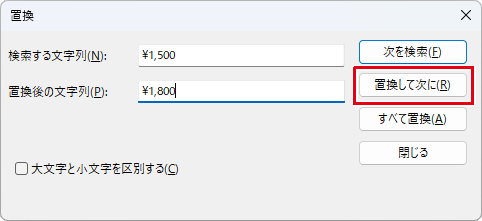 「置換」画面が表示されましたら、