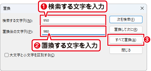 ❷ 置換する文字を入力します。例:980