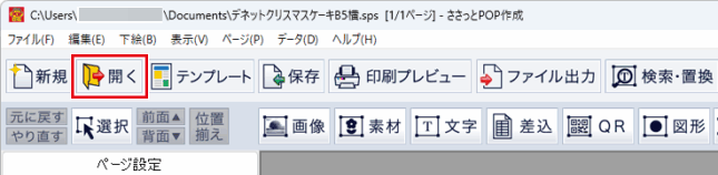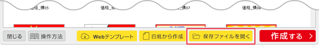 デザインテンプレート画面から保存ファイルを開く
