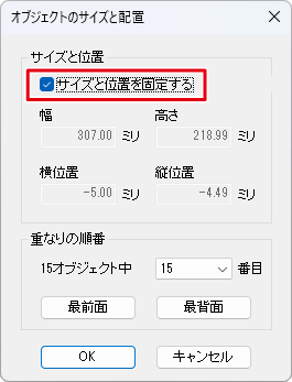 「サイズと位置を固定する」にチェックを入れて固定することもできます。