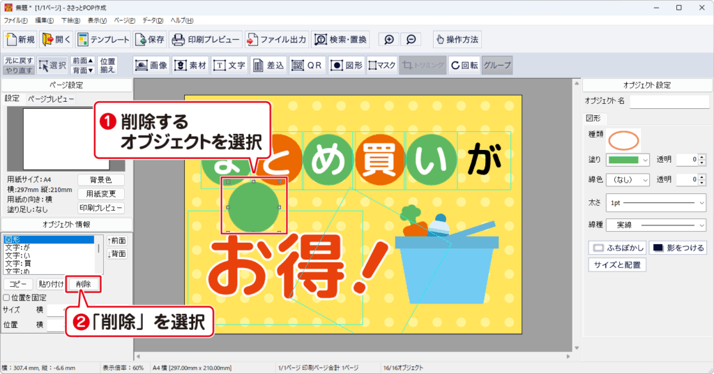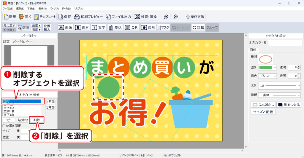 「オブジェクト情報」からオブジェクトを選択して削除することもできます。