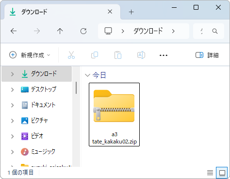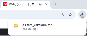 例:「ダウンロード」フォルダへWebテンプレートデータが保存されました。