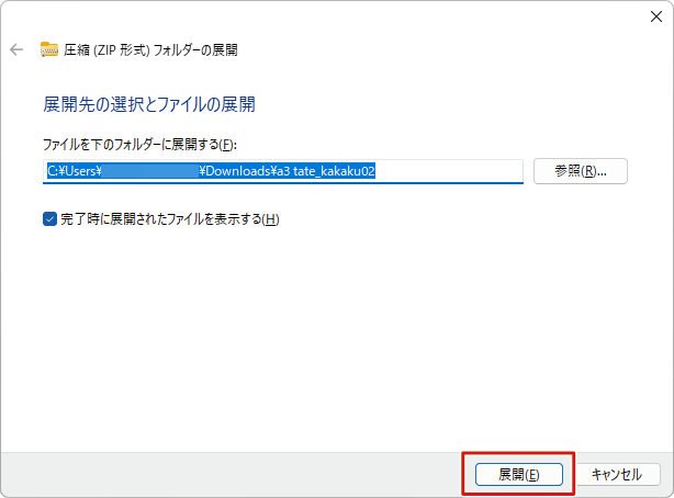 チェックが入っていることを確認し、「展開」ボタンをクリックします。