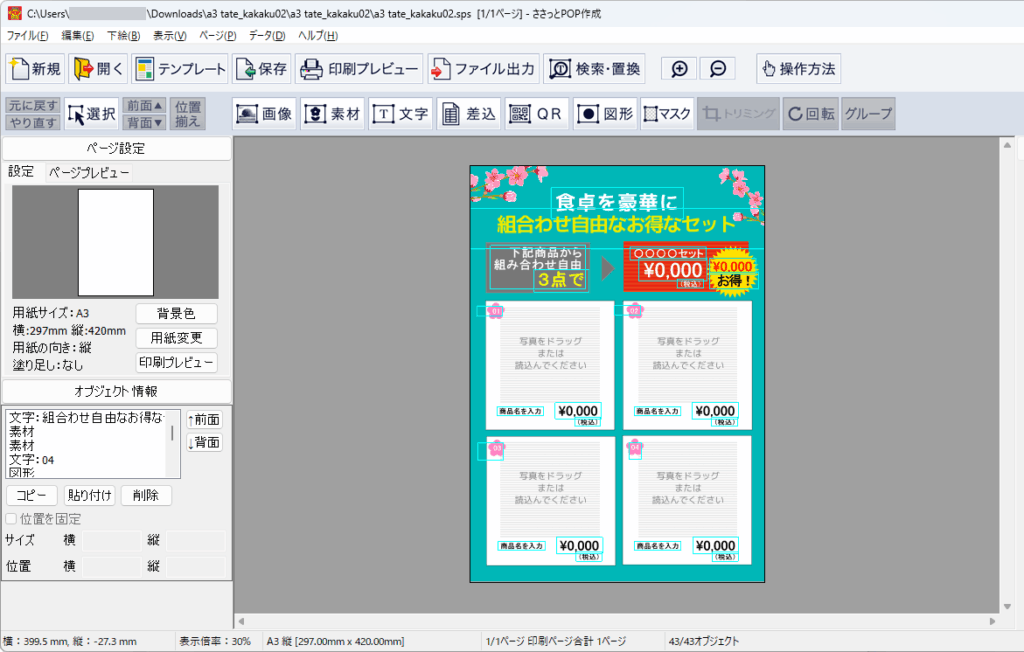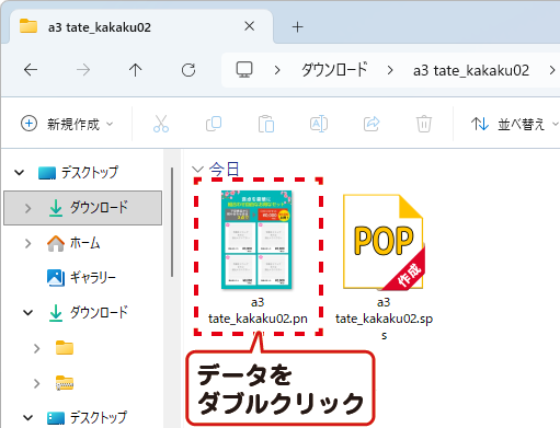 Webテンプレートデータ(.sps)をダブルクリックで開きます。