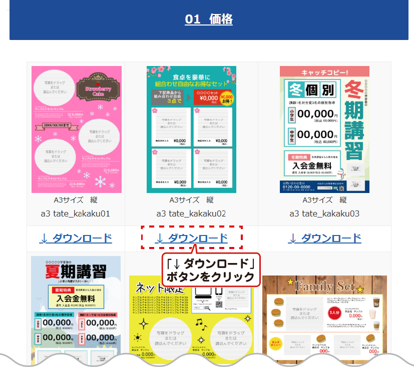 Webテンプレートデータをダウンロード